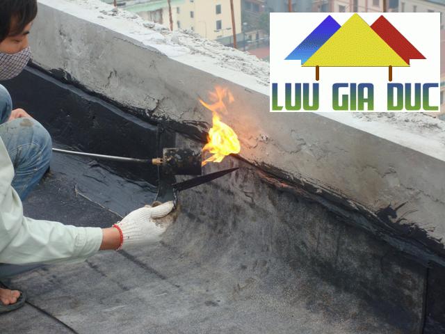 - Khò mặt dưới màng lưới chống thấm với thiết bị khò, khò bằng gas (hoặc hỗn hợp khí chưá 96% prôban và 6% butan, khi áp suất khí từ 4.6-5 bar). Đốt nóng bề mặt thi công và dán nhanh phần màng đã được khò nóng ngay cùng lúc.
